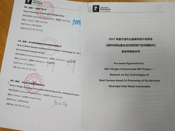 北仑尚科公司“高炉协同处置生活垃圾焚烧飞灰关键技术研究”成功获得宁波市科技局立项
